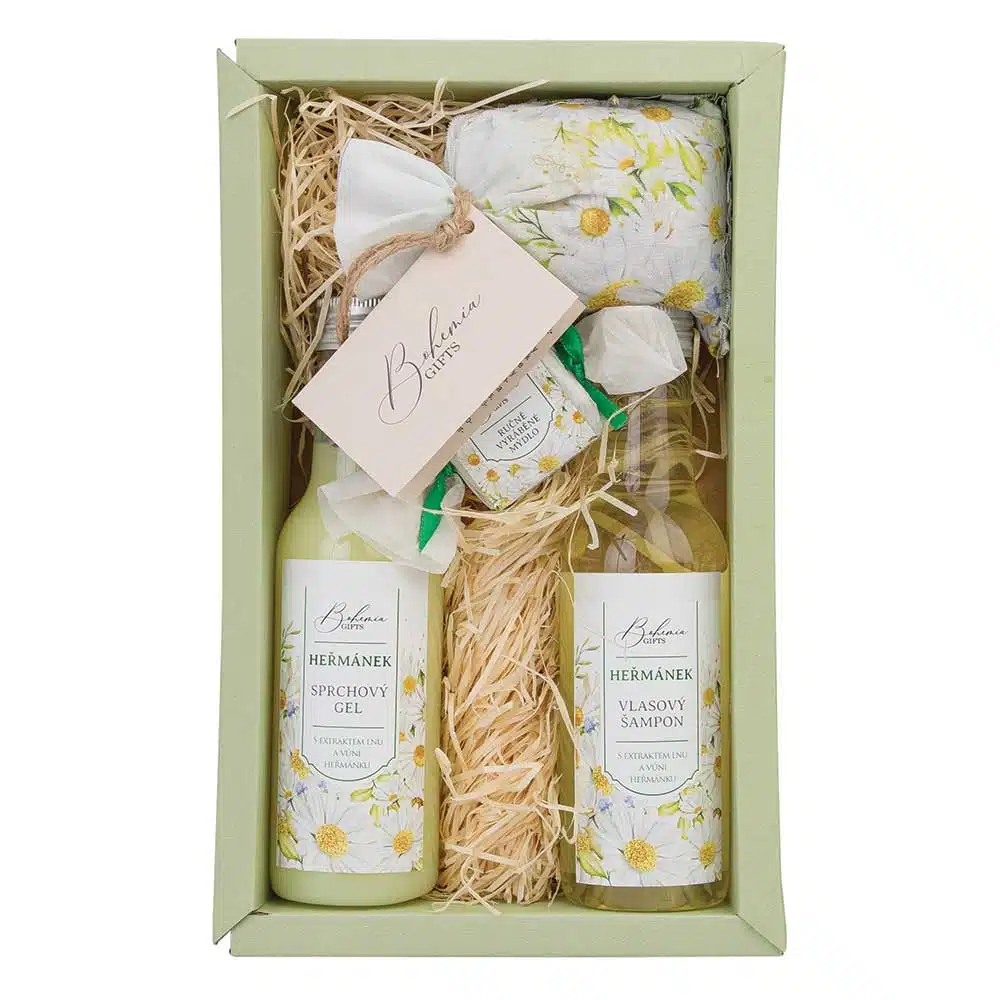 Každý výrobek v kosmetickém balíčku je oživen vůní heřmánku, která okamžitě uvolní vaše myšlenky. Naše receptury jsou bohaté na přírodní extrakty, které šetrně pečují o vaši pokožku a vlasy. Změňte svou koupelnu na relaxační oázu s naším kosmetickým balíčkem.