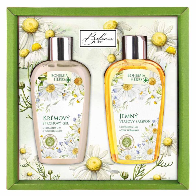 - Kosmetický balíček s vůní heřmánku – sprchový gel 250 ml a šampon 250 ml